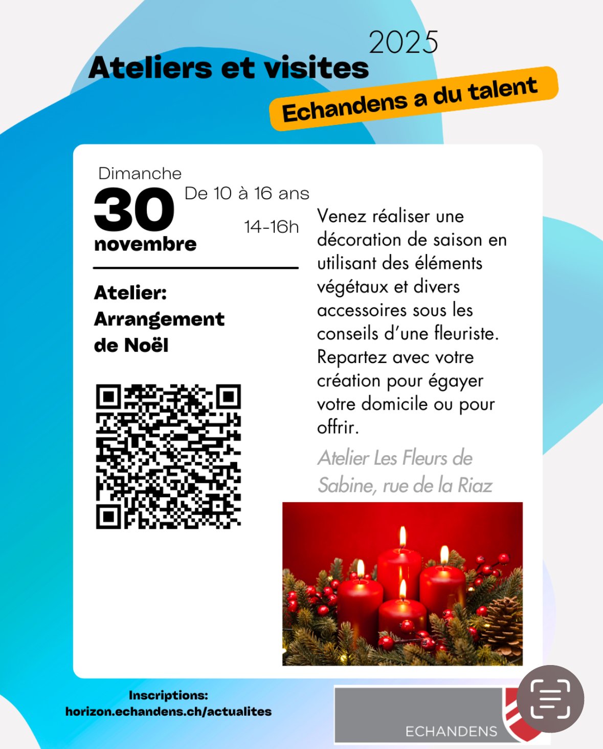 Les ateliers continuent jusqu'à la fin de l'année, pour vous offrir un moment de création florale dans une ambiance douce et chaleureuse.